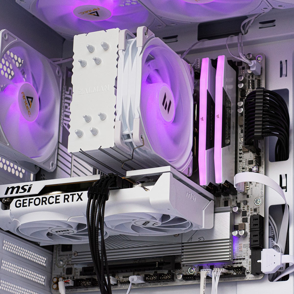 De tempered glass zijwand biedt een prachtig zicht op het interieur, waardoor de verlichting en hoogwaardige componenten echt tot hun recht komen. De voorgeïnstalleerde ARGB-ventilatoren zorgen niet alleen voor een indrukwekkende lichtshow, maar ook voor een uitstekende airflow en koeling. Dankzij de slimme indeling is de kast verrassend ruim en geschikt voor luchtkoeling,met voldoende plek voor meerdere ventilatoren of radiatoren.