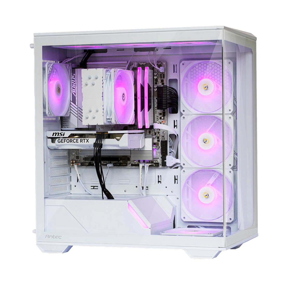 Deze PC is gebouwd in de stijlvolle Gamer C3 ARGB behuizing, een echte blikvanger voor elke setup. De kast is uitgerust met adresbare RGB-verlichting (ARGB), wat betekent dat je de verlichting volledig naar eigen smaak kunt instellen – per LED afzonderlijk. Met ondersteuning voor populaire softwareplatforms zoals ASUS Aura Sync, MSI Mystic Light en Gigabyte RGB Fusion, laat je de verlichting perfect synchroniseren met de rest van je hardware.